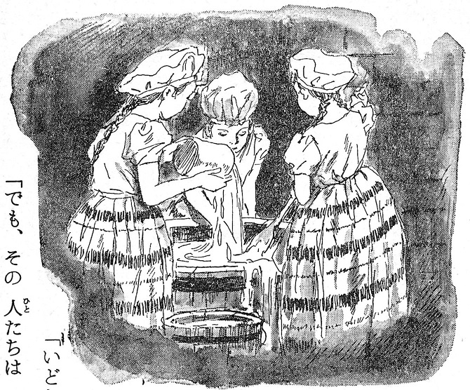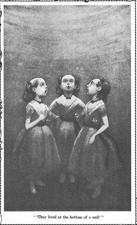 マッド・ティーパーティの中でヤマネが語る「糖蜜井戸の中の三姉妹」の話がある。その箇所を会話部分だけ抜き出してみよう。ヤマネ「むかしむかし、小さな三姉妹がいました。名前はエルシー、レイシー、ティリー。三人は井戸の底に住んでいました」
